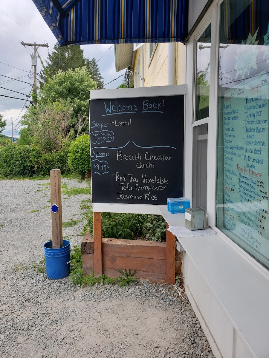 Edit: the split pea soup is vegetarian and delicious! Awesome ice cream! And conveniently located if you're out there without much else around. There are outdoor picnic tables covered in a tent thingy if you want to eat there. I'm knocking off a star because the food isn't awesome. I had a Mediterranean panini and it wasn't bad, but it wasn't great. We also had a chicken bacon ranch wrap that got good reviews. I absolutely don't recommend the "nachos." It's tortilla chips with some shredded cheese that's been tossed in an oven for a couple minutes. Friendly staff and I recommend the doggie ice cream - very popular with our pup.